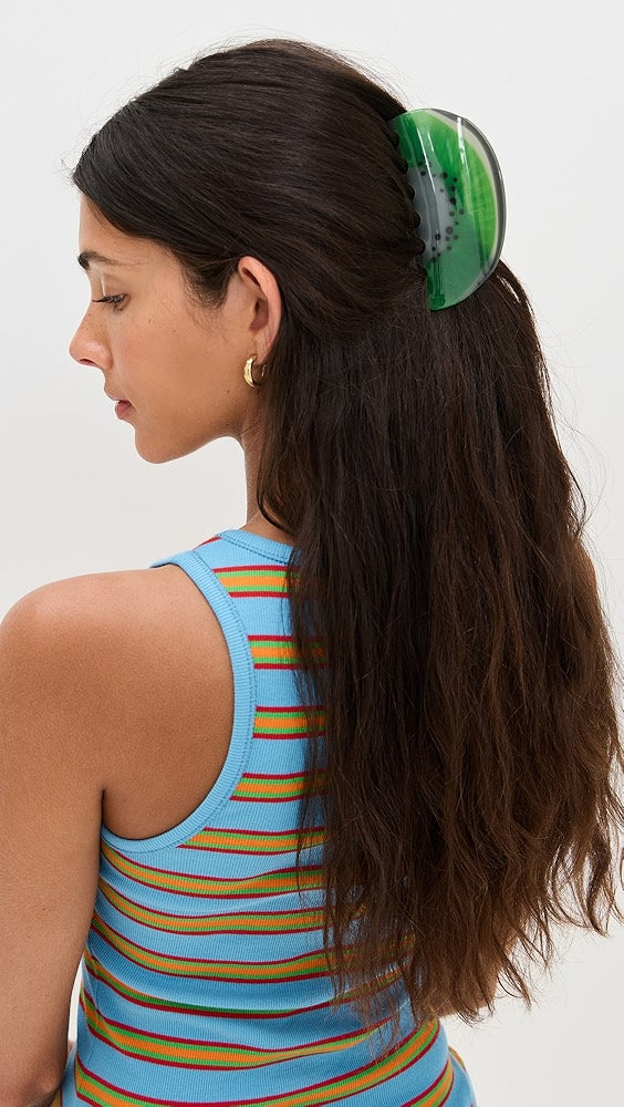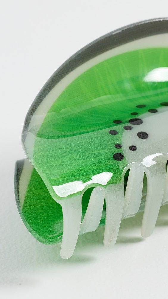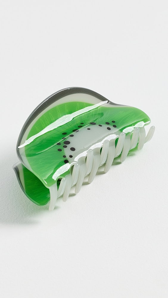 Kivi diliminden ilham alan bu sevimli saç klipsi, enerjik yeşil rengi ve detaylı deseniyle saçlarına fresh bir hava katıyor. Hem sağlam tutuşuyla gün boyu saçlarını sabitler, hem de eğlenceli tasarımıyla yaz kombinlerinin yıldızı olur.