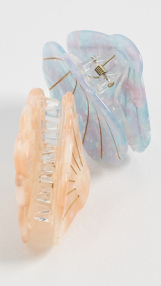 Bu 4’lü deniz kabuğu tokası seti, pastel renk tonları ve altın çizgi detaylarıyla hem romantik hem de sofistike bir görünüm sunar. Günlük kombinlerden yaz tatillerine kadar her ortamda şıklığınızı tamamlayan zarif bir aksesuar seti.