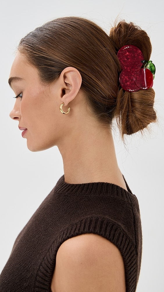 Kiraz formunda tasarlanan bu akrilik saç tokası, parlak dokusu ve minik taş detaylarıyla hem günlük kombinlere enerji katar hem de özel günlerde göz alıcı bir aksesuar olur. Dayanıklı yapısı sayesinde saçınızı gün boyu sabit tutarken, renkli ve sevimli tasarımı tarzınızı öne çıkarır.